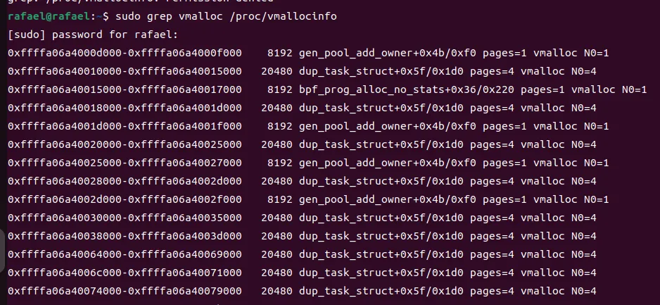 我们也可以通过vmalloc分配的内存将它统计输出,具体如下: