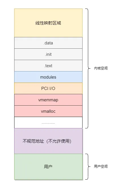内核空间(User space):0x0000_0000_0000_0000至Ox0000_FFFF_FFFF_FFFF。